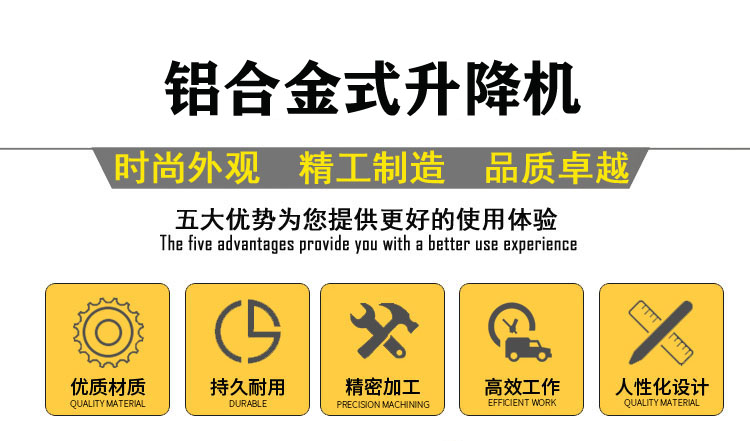 鋁合金式升降平臺采用高強度優質鋁合金材料,具有造型美觀,體積小,重量輕,升降平穩,安全可靠等優點.